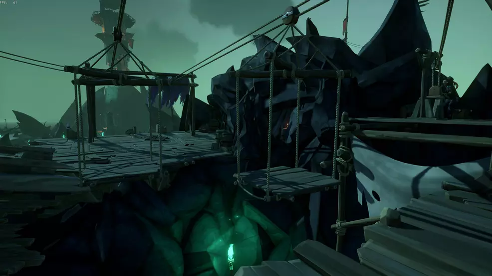 Plow the light around and light up the brazier y'all revealed by moving the sails behind the locked ship door. This is critical in acquiring the Journals of the Headless Monkey's captain. You tin can now safely light the other three braziers out across the water. Afterward the Cursed Captain is set up to get, catch him and head back down – you should now go and get the Journals of the Headless Monkey'due south helm.