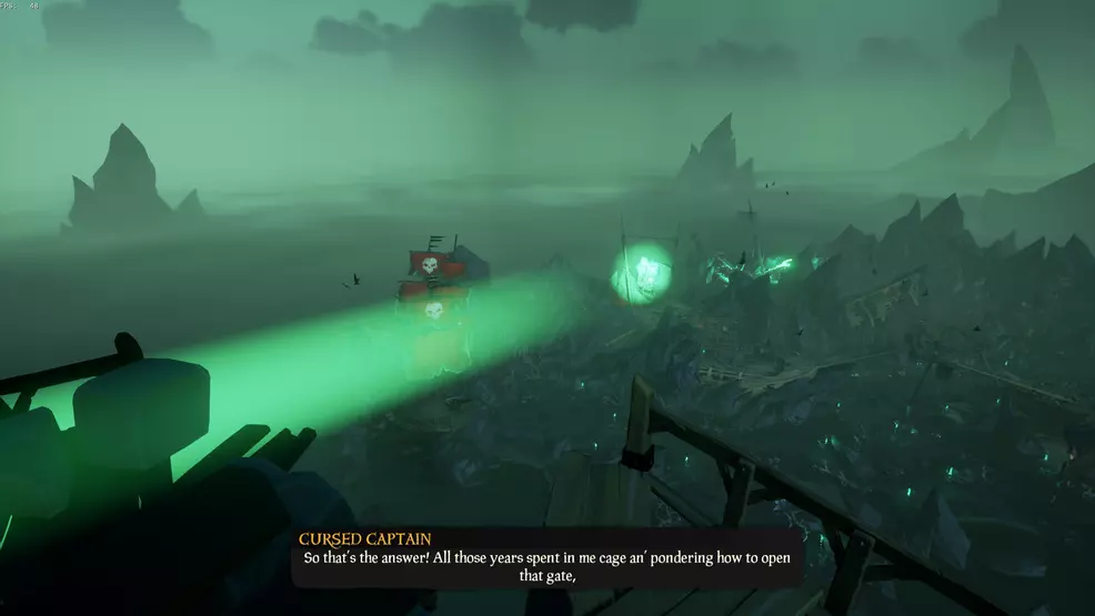 Follow the path to the heart of the surface area, y'all should begin to hear the Cursed Captain talking. You lot first task volition be to rescue the Cursed Helm.