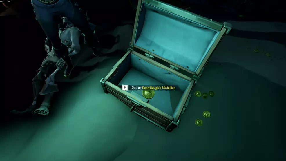 Use Dougie's primal on the chest to open it. Grab Poor Dougie'southward Medallion and head back to the center of the area.