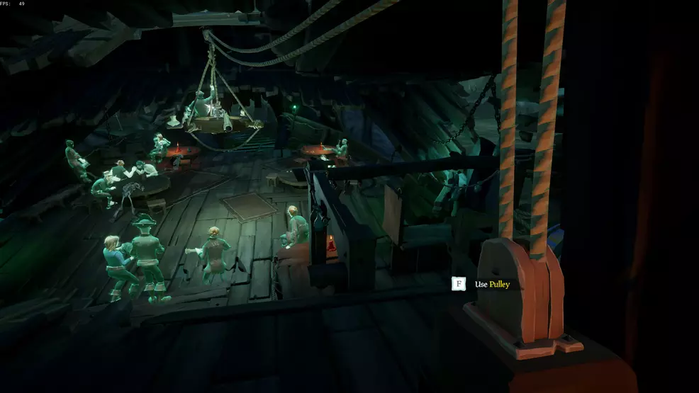 The cage cardinal is plant in the tavern, which is to the side of the area. Enter it and get up behind the bar to find a pulley. Use the pulley to lower the chandelier, which has the key on it. Grab the cage key and take information technology dorsum to the Cursed Captain and unlock his cage.